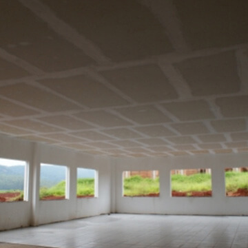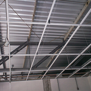 Forro de alta praticidade: A forração é feita de forma rápida, utilizando-se perfis metálicos, (sustentados por tirantes - arame rígido), e placas em fibra mineral, com pintura a base de látex, na cor branco, na face aparente (1250 x 625 x 16 mm). As placas são removíveis, o que garante facilidade na manutenção do próprio forro e de tudo que passa sobre ele, como tubulações e parte elétrica. Ideal para ser aplicado em áreas comerciais e industriais, podendo, também, ser utilizado em residências.